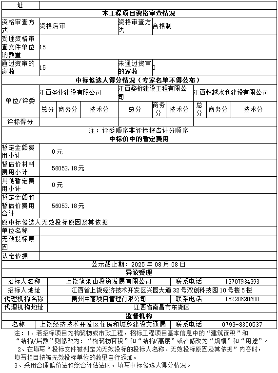 江西省房屋建筑和市政基礎(chǔ)設(shè)施工程施工招標(biāo)中標(biāo)候選人公示
